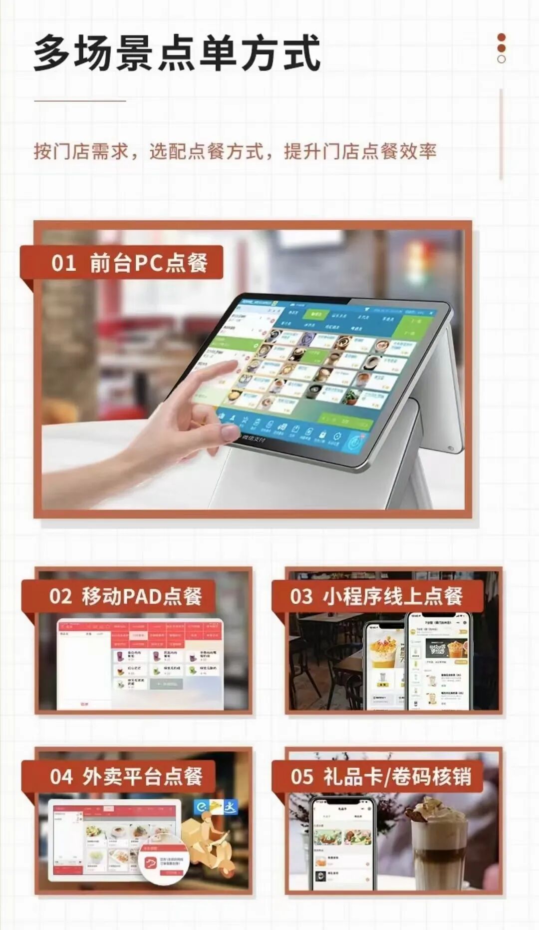 根据收银机的不同型号,大致适用于五种常见消费场景