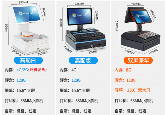 中小型商铺适用Windows操作系统的普通收银机,其运算速度快,配置不错,不容易卡顿,最重要的是有不同的收银软件可供选择。