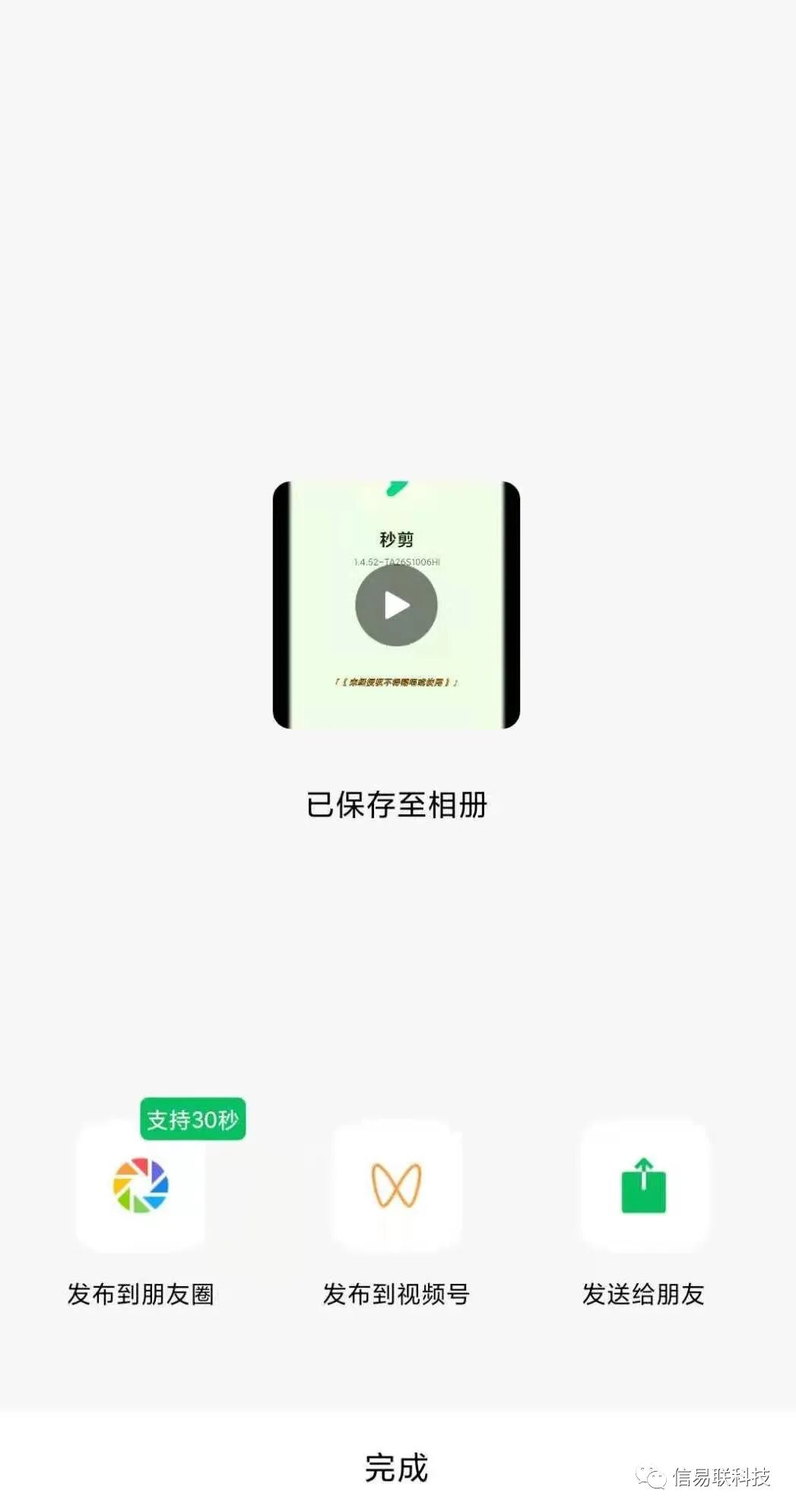 制作完成的视频,可保存至相册/或草稿箱(可再次编辑);也可以一键发布到微信朋友圈,或发布到视频号,非常方便!